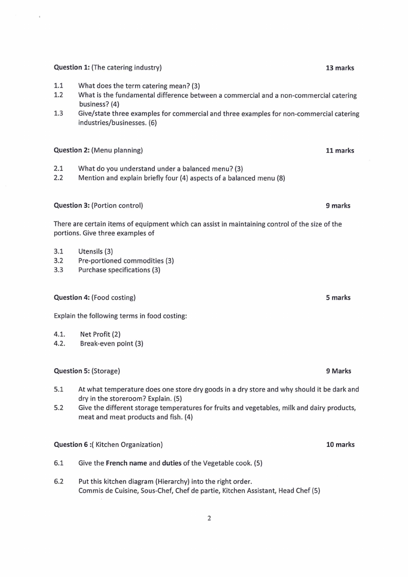 Question 1: (The catering industry)