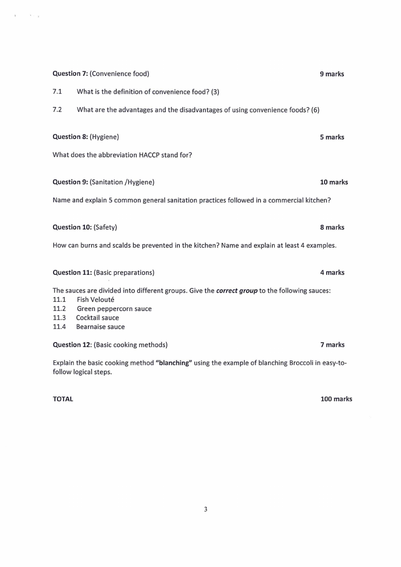COURSE NAME: FOOD PRODUCTION THEORY