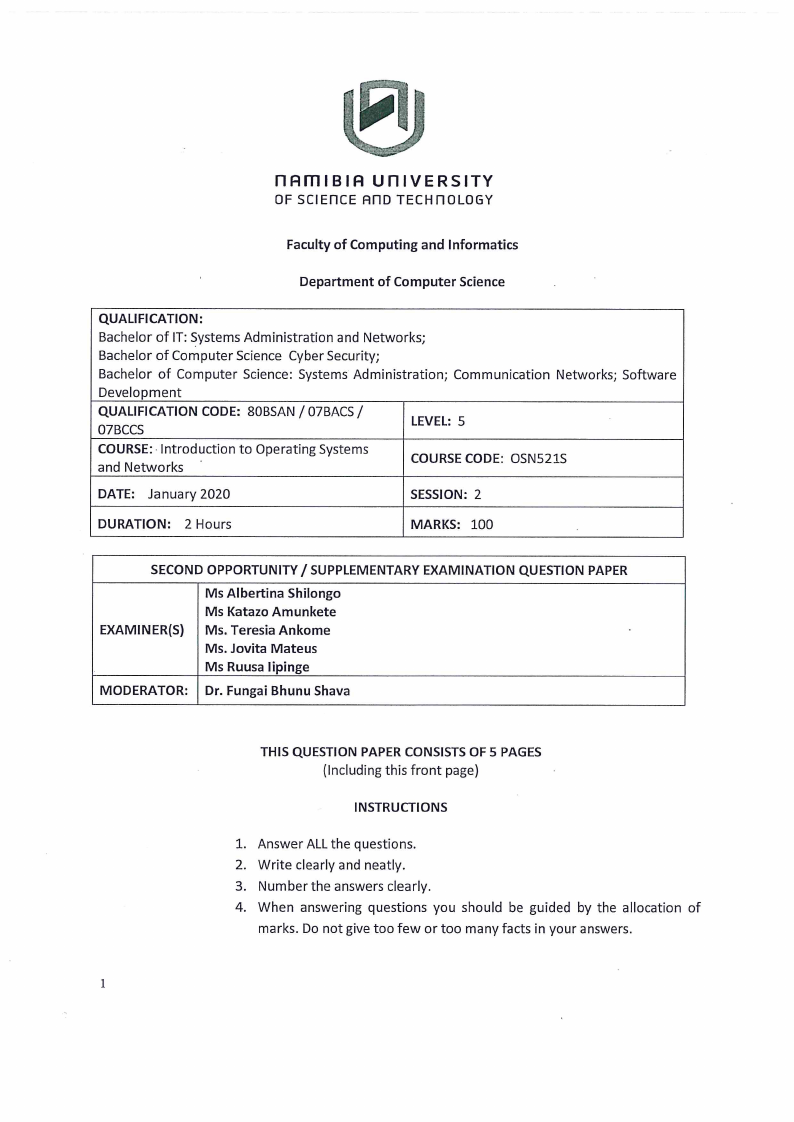 OSN521S - INTRODUCTION TO OPERATING SYSTEMS - 2ND OPP - JAN 2020 |