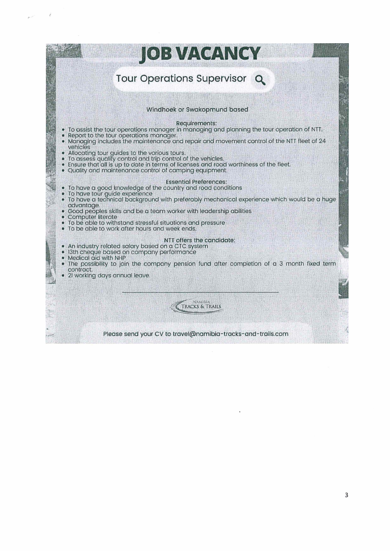 2.1 Design a complete job description for the TOUR OPERATORSUPERVISORposition. (Sx3=15)