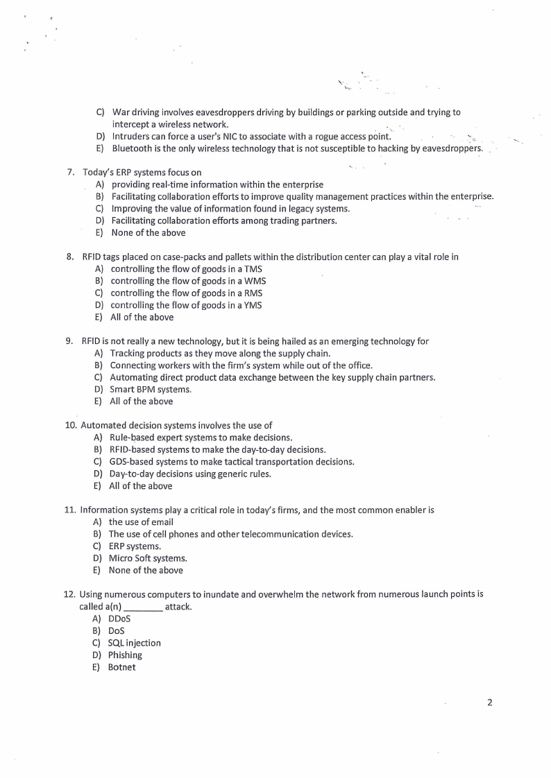 1. Warehouse management systems (WMS) represent an example of what general type of information