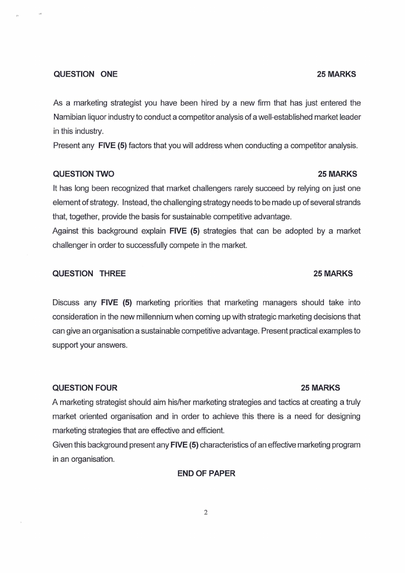 SECOND OPPORTUNITY EXAMINATION QUESTION PAPER