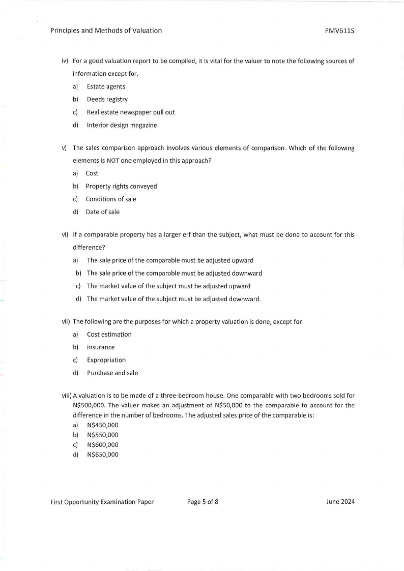 PMV611S - PRINCIPLES AND METHODS OF VALUATION - 1ST OPP - JUNE 2024 |