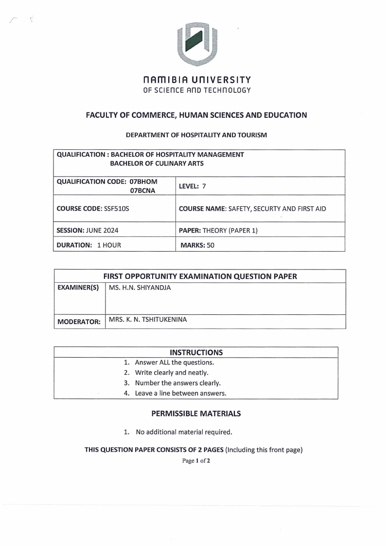 SSF510S - SAFETY SECURITY AND AND FIRST AID - 1ST OPP - JUNE 2024 |