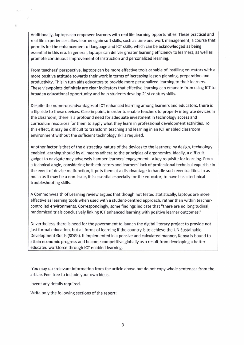the digital literacy program is to kick off in selected primary schools. Technology integration to