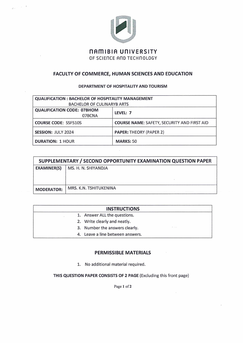 SSF510S - SAFETY SECURITY AND AND FIRST AID - 2ND OPP - JULY 2024 |