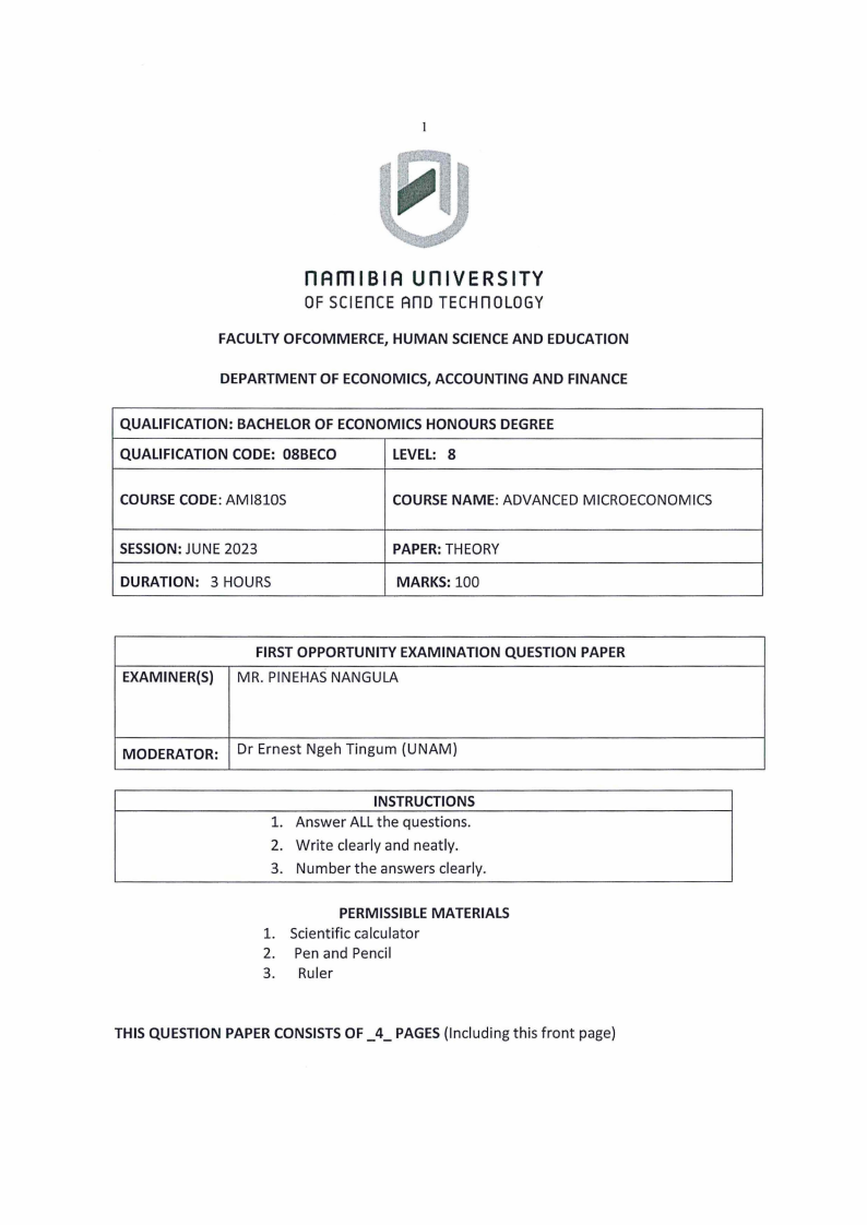 AMI810S- ADVANCED MICROECONOMICS- 1ST OPP- JUNE 2023 |