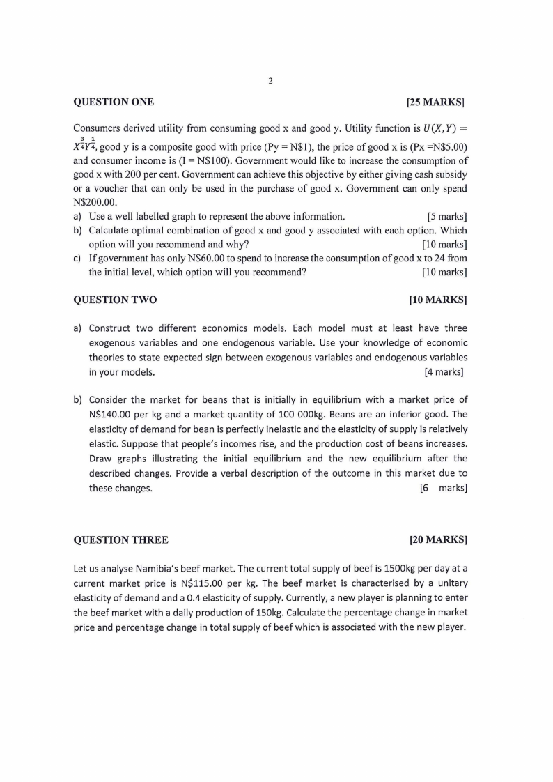 N$140.00 per kg and a market quantity of 100 000kg. Beans are an inferior good. The