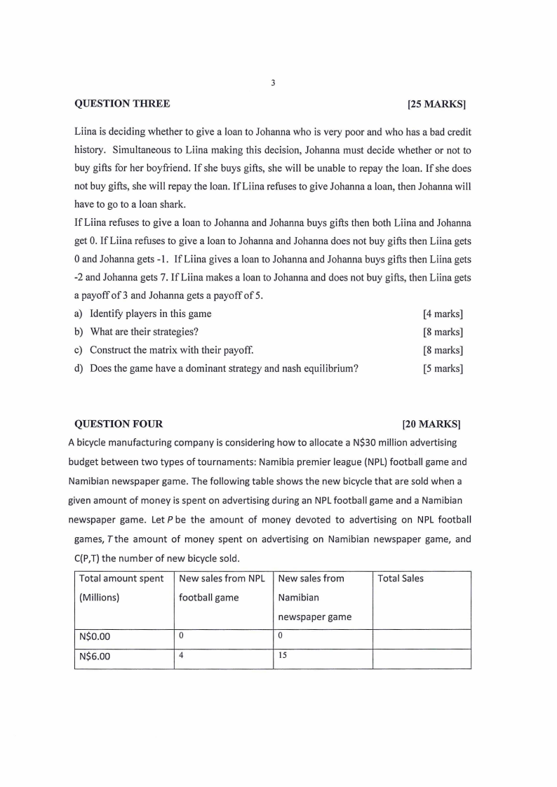 Namibian newspaper game. The following table shows the new bicycle that are sold when a