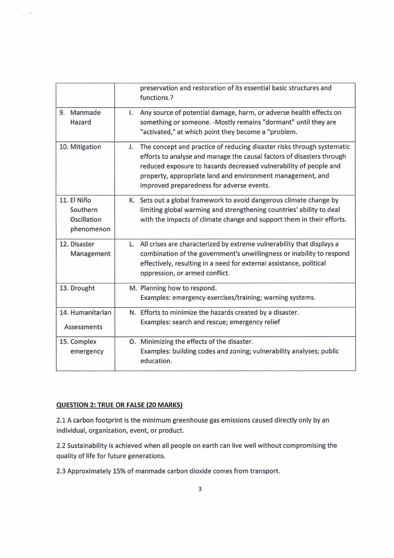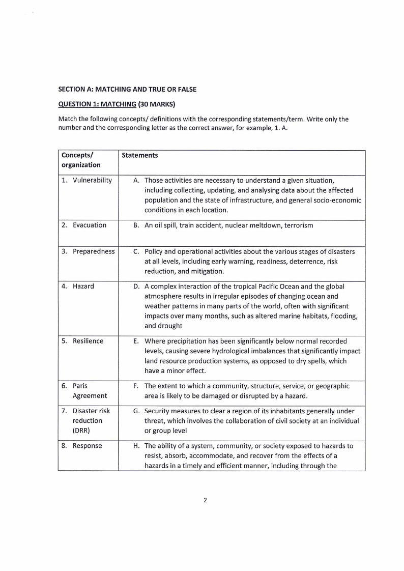 QUESTION 1: MATCHING {30 MARKS)