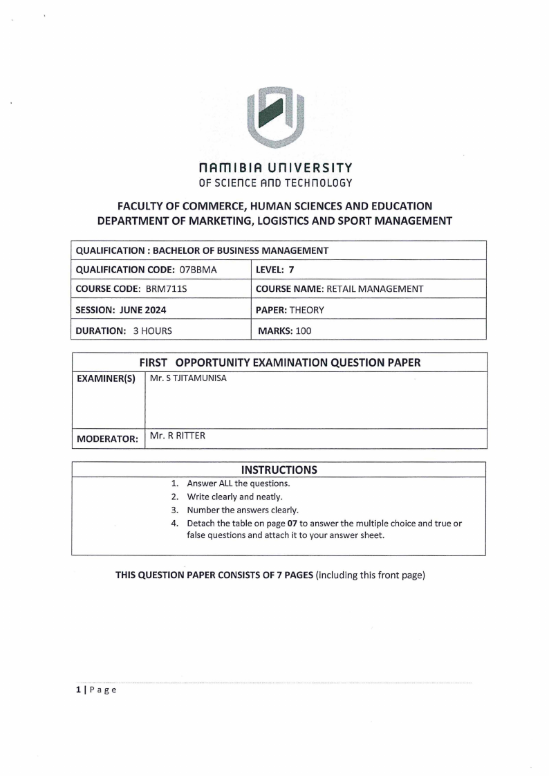 BRM711S- RETAILS MANAGEMENT-1ST OPP- JUNE 2024 |