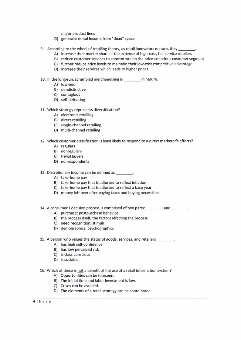 9. According to the wheel of retailing theory, as retail innovators mature, they ___ _