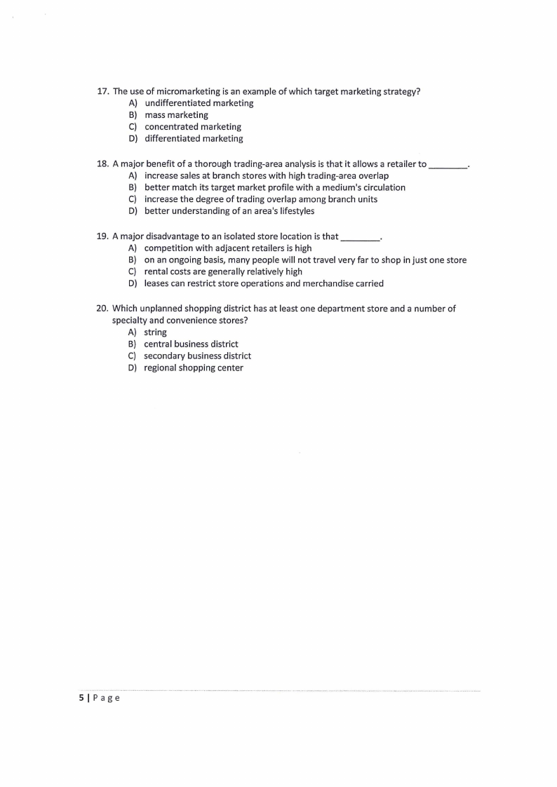 3. Which of the following is not part of the total retail experience for a men's clothing retailer?