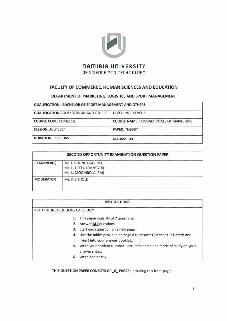FOM511S- FUNDAMENTALS OF MARKETING- 2ND OPP- JULY 2024 |