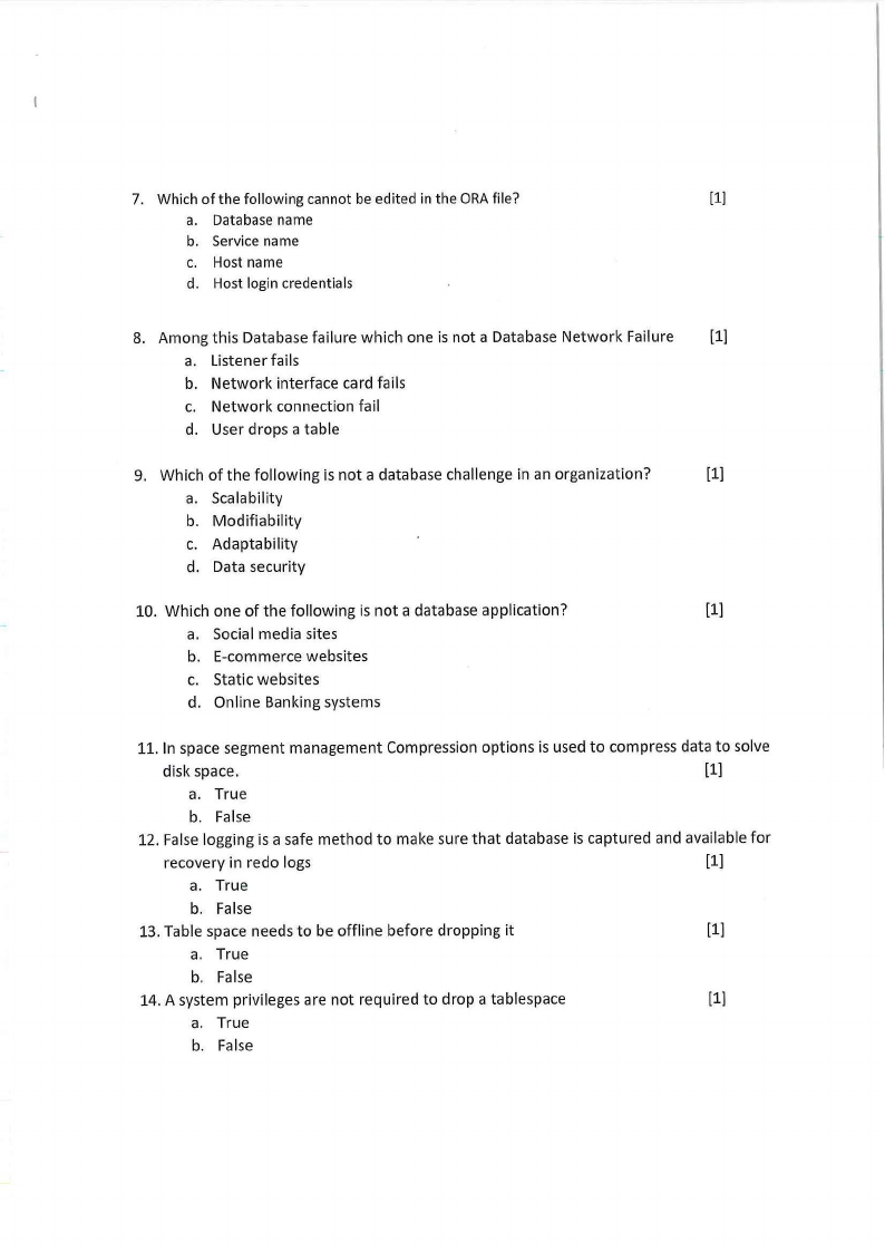 b) In Oracle database backup is very important, we have Full backup, incremental backup and