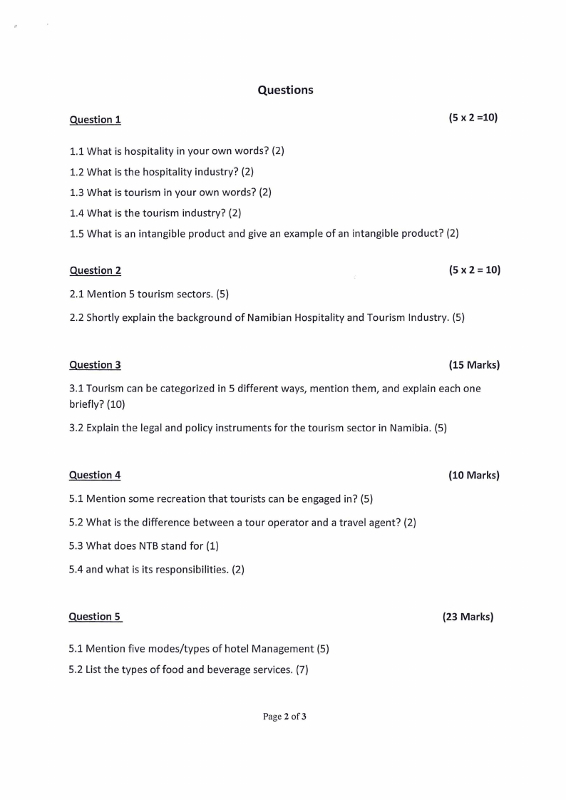 2.2 Shortly explain the background of Namibian Hospitality and Tourism Industry. (5)