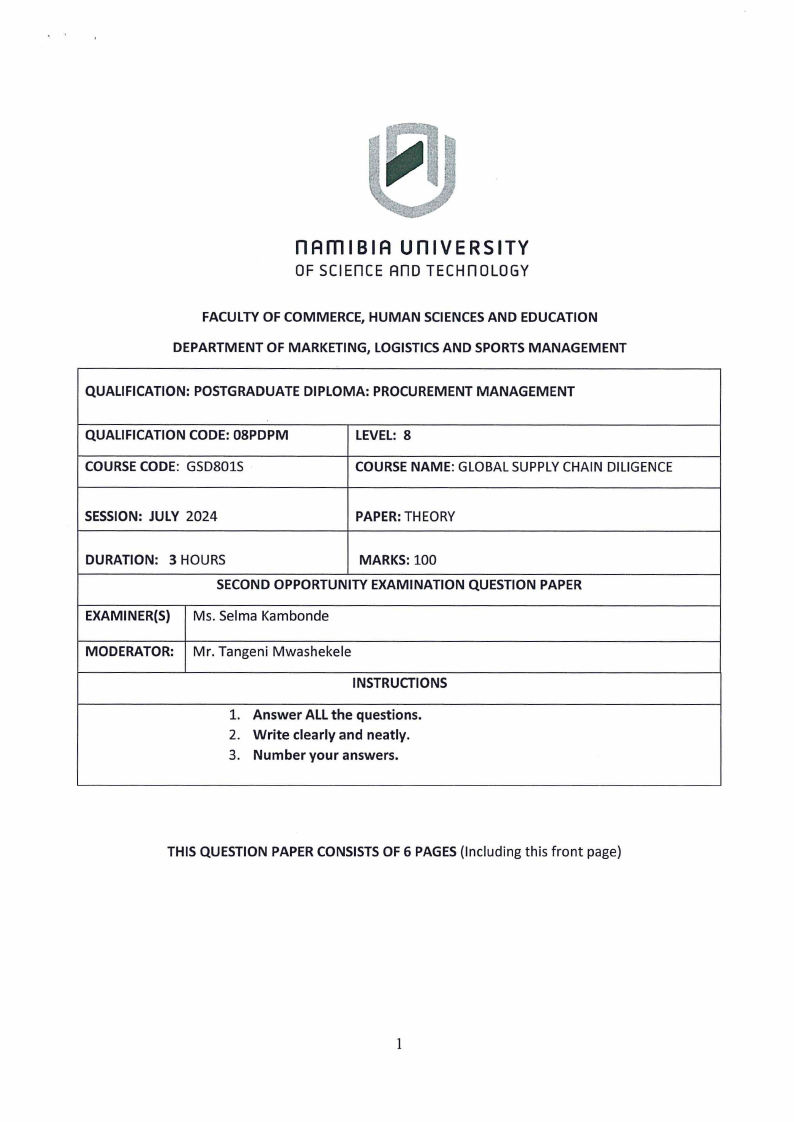 GSD801S- GLOBAL SUPPLY CHAIN DILIGENCE- 2ND OPP- JULY 2024 |
