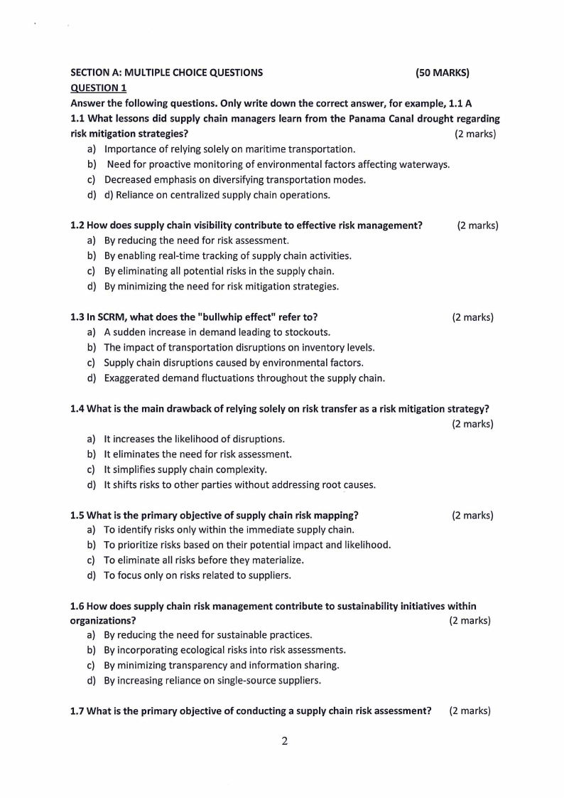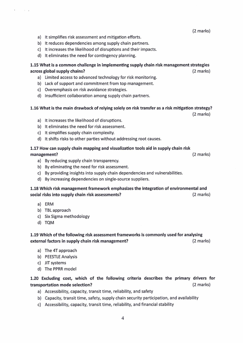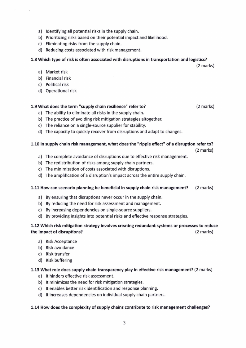 1.13 What role does supply chain transparency play in effective risk management? (2 marks)