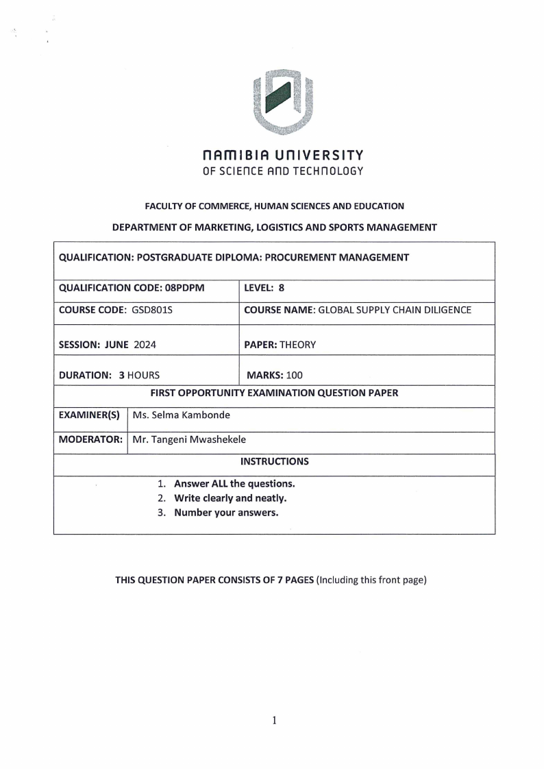 GSD801S- GLOBAL SUPPLY CHAIN DILIGENCE- 1ST OPP- JUNE 2024 |