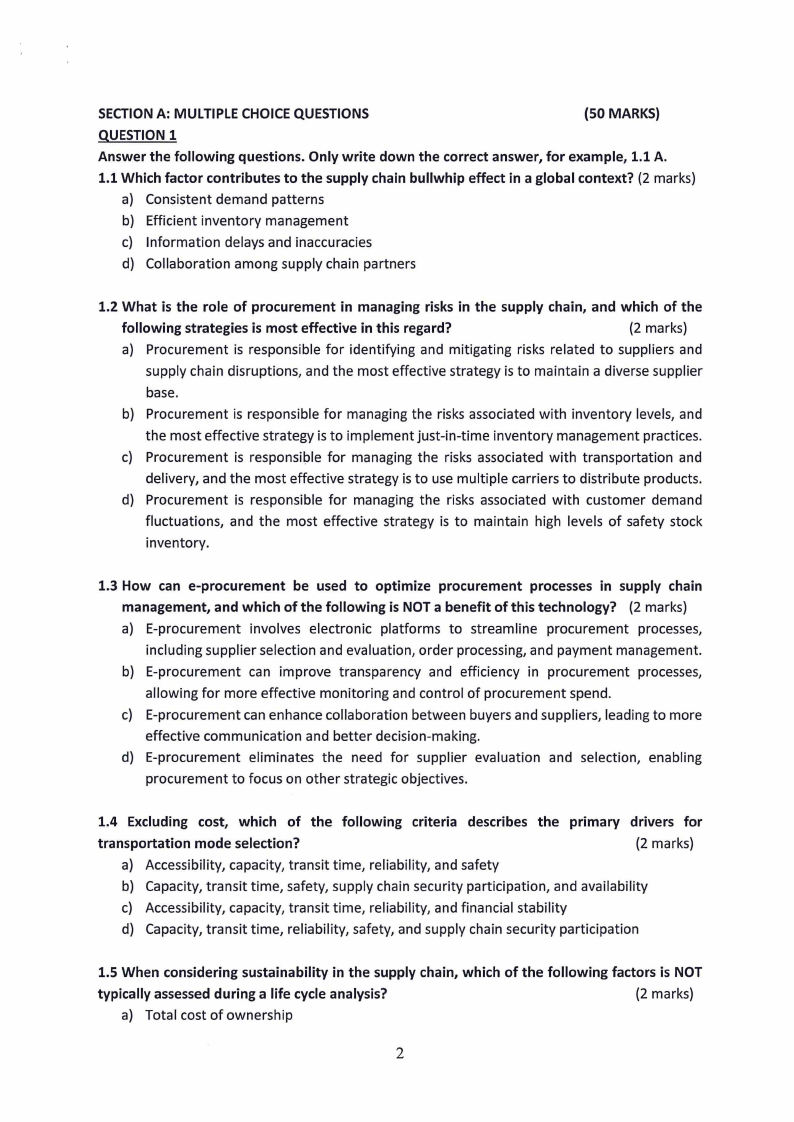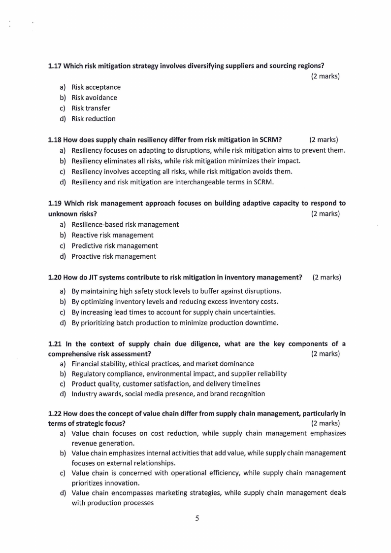 1.2 What is the role of procurement in managing risks in the supply chain, and which of the