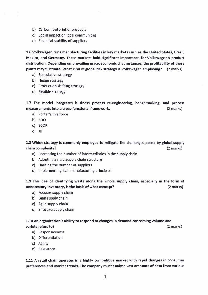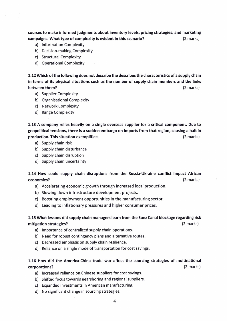 1.1 Which factor contributes to the supply chain bullwhip effect in a global context? (2 marks)