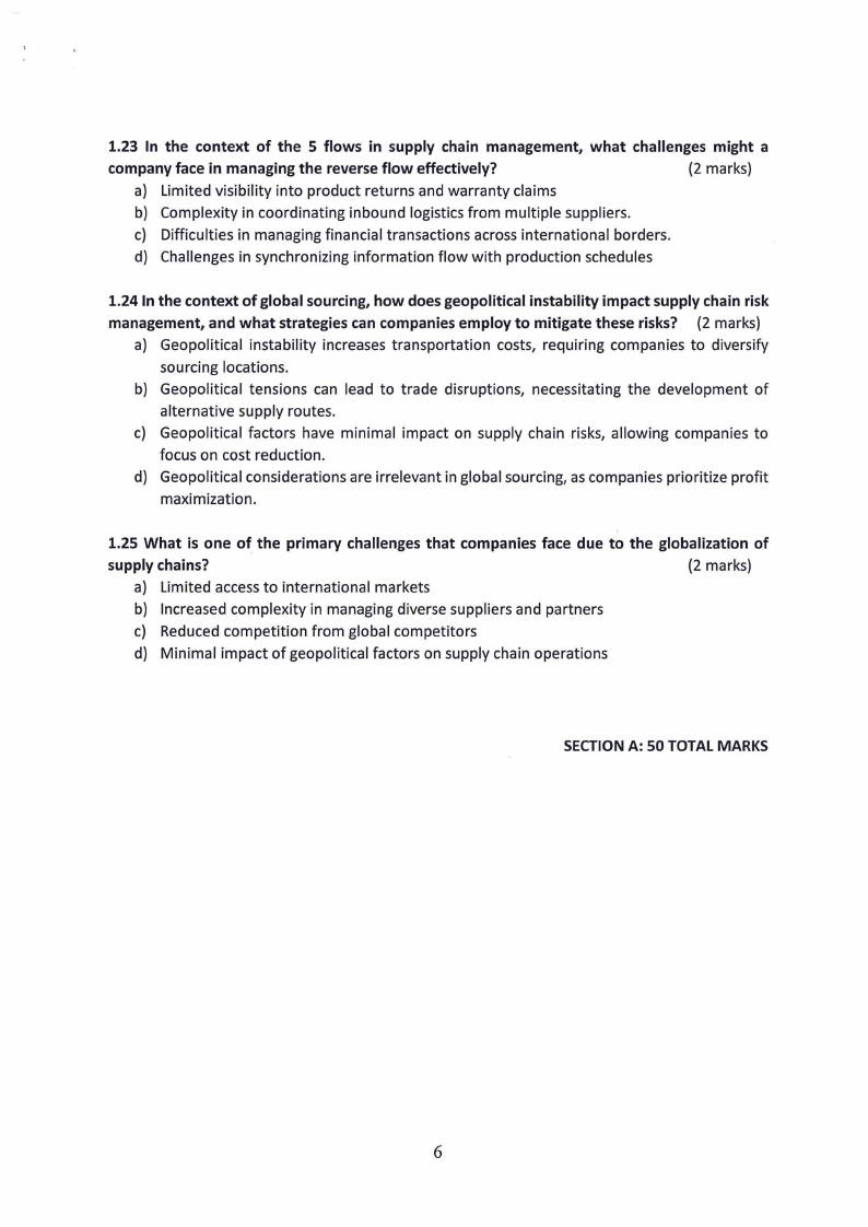 1.23 In the context of the 5 flows in supply chain management, what challenges might a