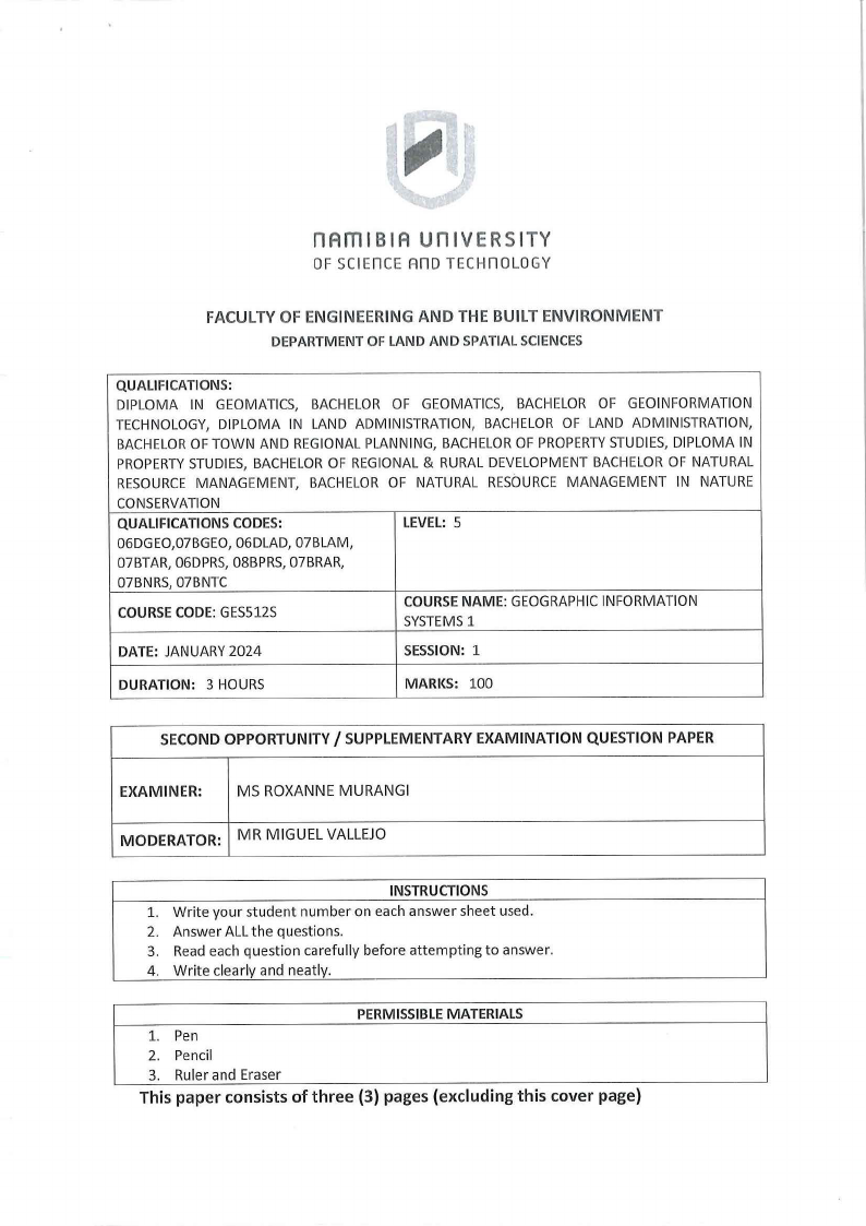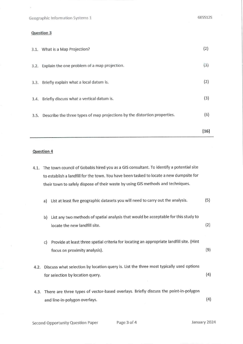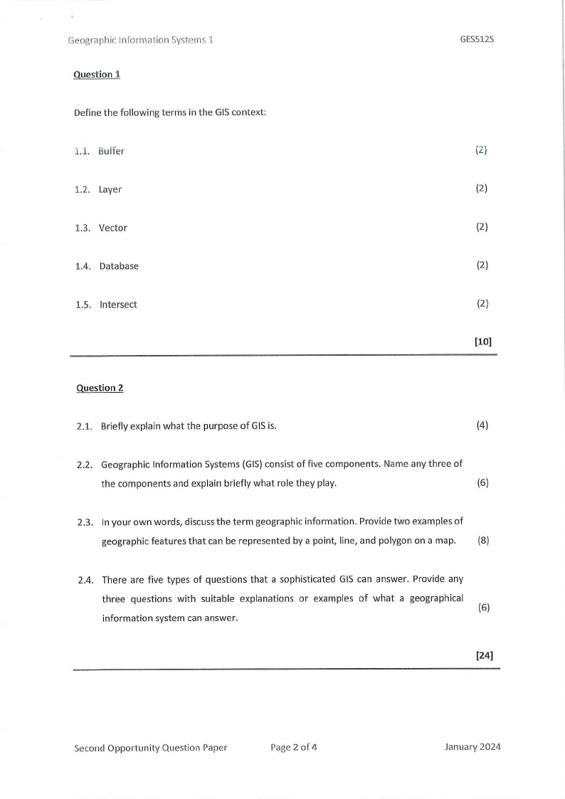 GES512S - GEOGRAPHIC INFORMATION SYSTEMS 1 - 2ND OPP - JAN 2024 |