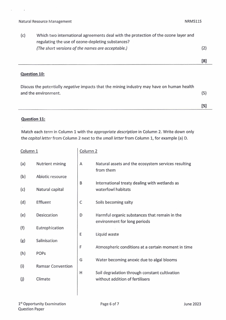 NRM511S - NATURAL RESOURCE MANAGEMENT - 1ST OPP - JUNE 2023 |