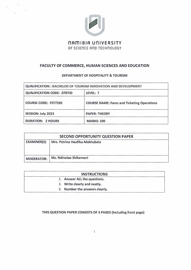 FST720S - FARES AND TICKETING OPERATIONS - 2ND OPP - JULY 2023 |