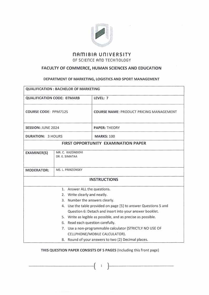 PPM712S- PRODUCT PRICING MANAGEMENT- 1ST OPP- JUNE 2024 |