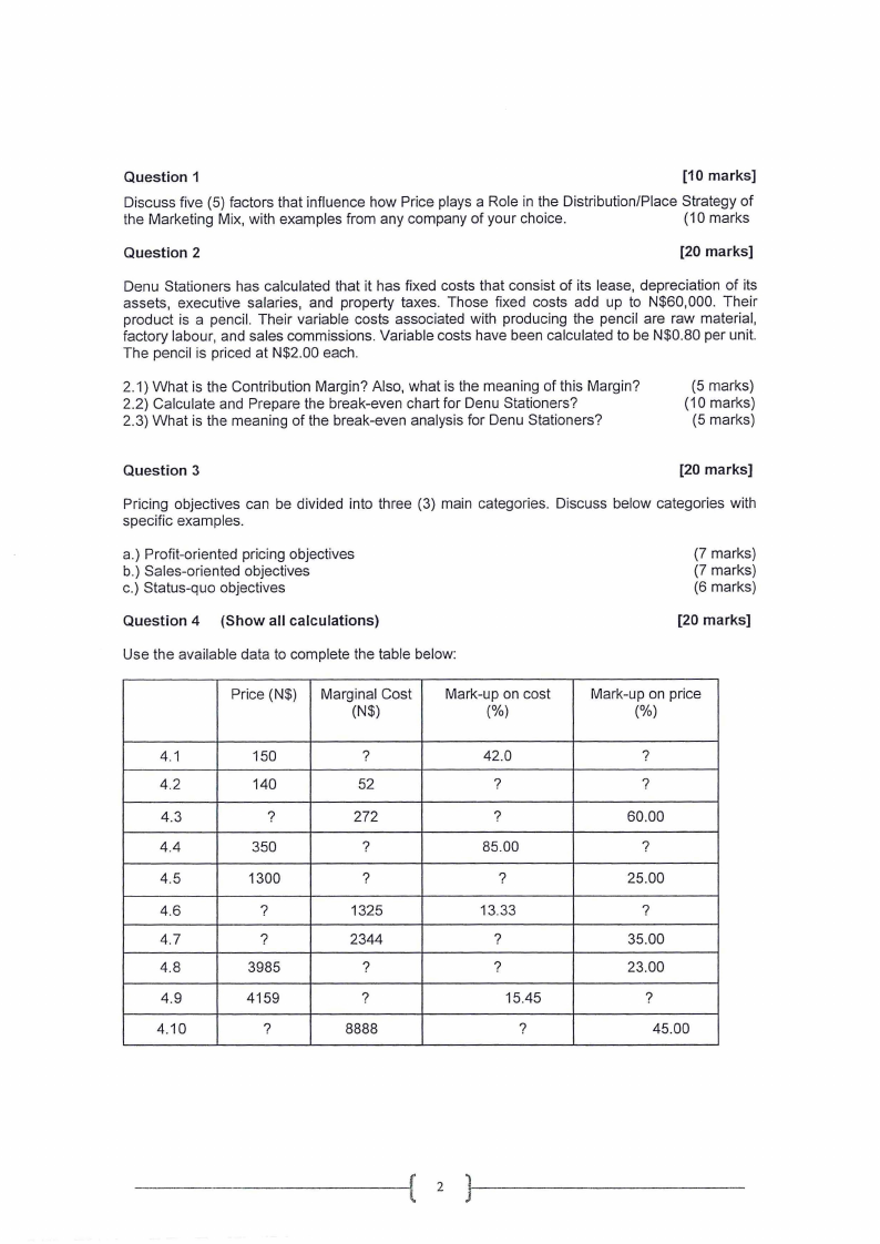 factory labour, and sales commissions. Variable costs have been calculated to be N$0.80 per unit.