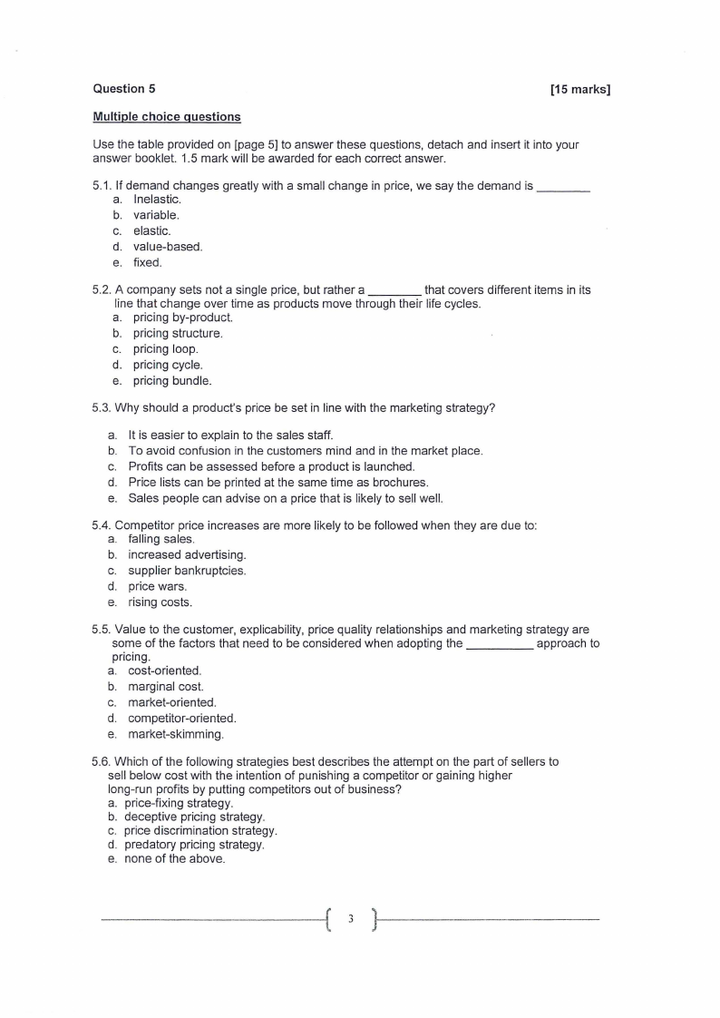5.5. Value to the customer, explicability, price quality relationships and marketing strategy are