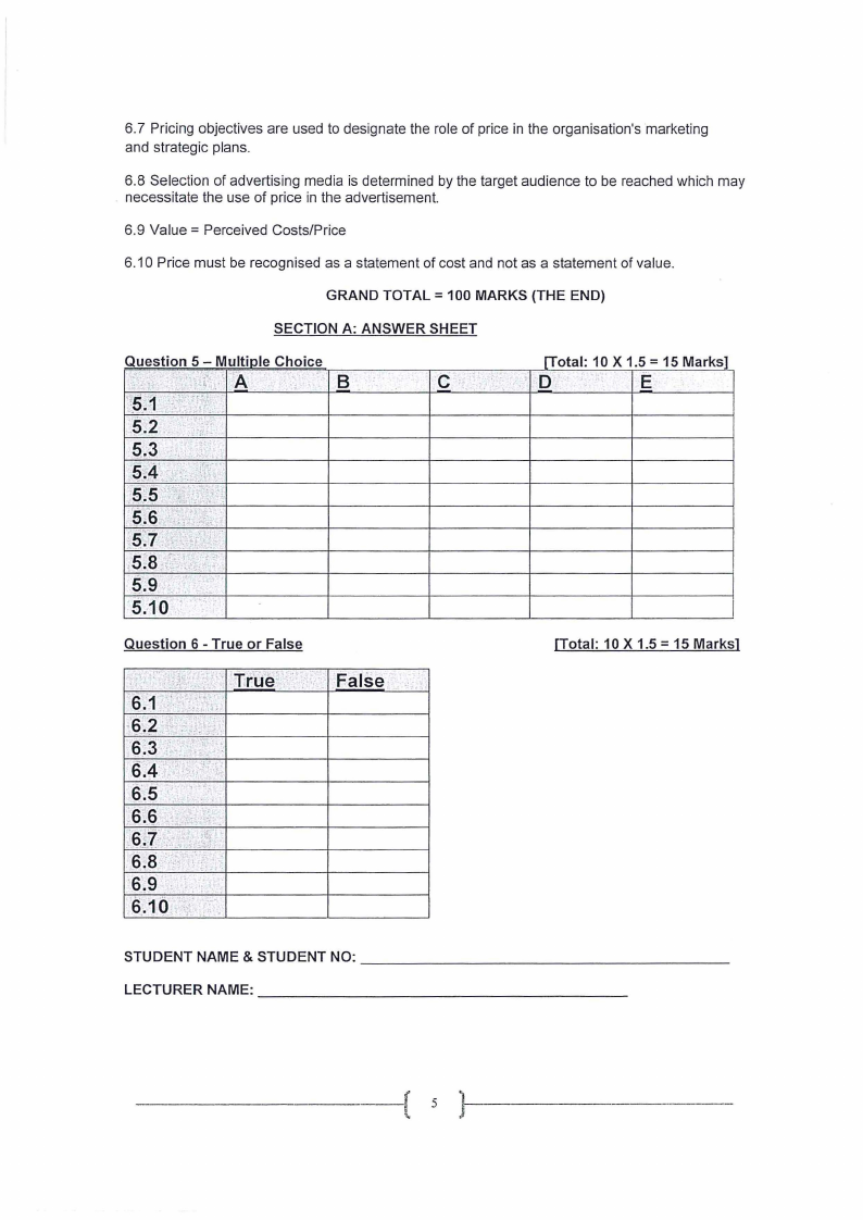 THIS QUESTION PAPER CONSISTS OF 5 PAGES (Including this front page)