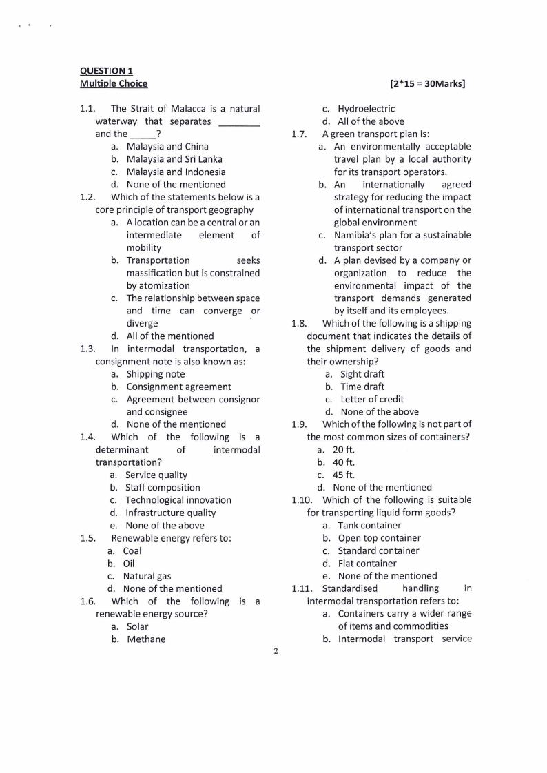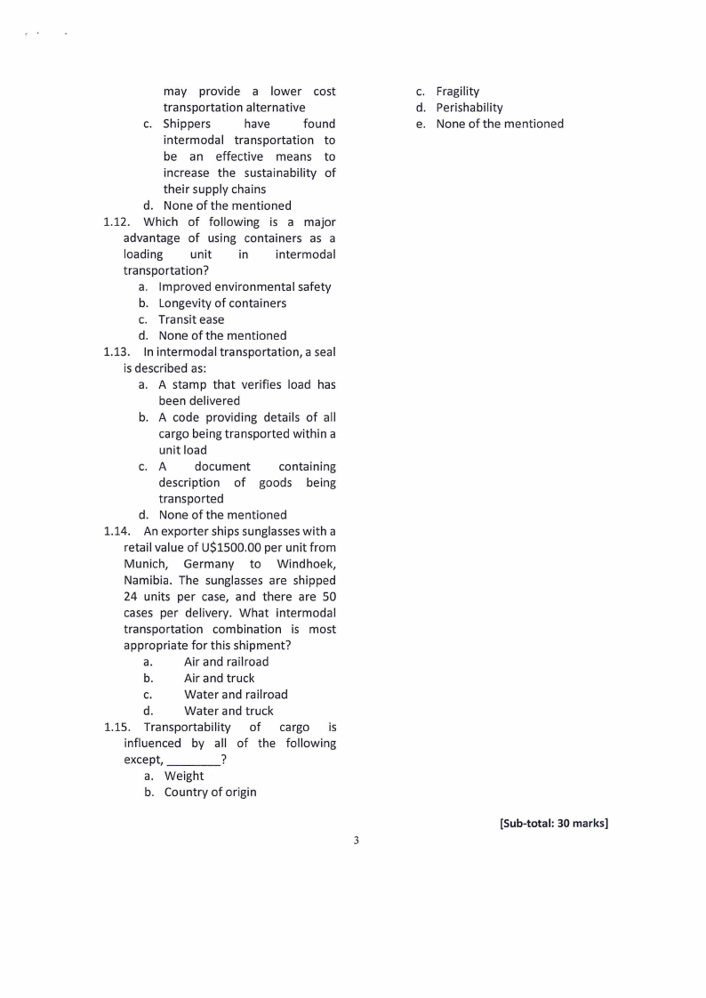 1.3. In intermodal transportation, a