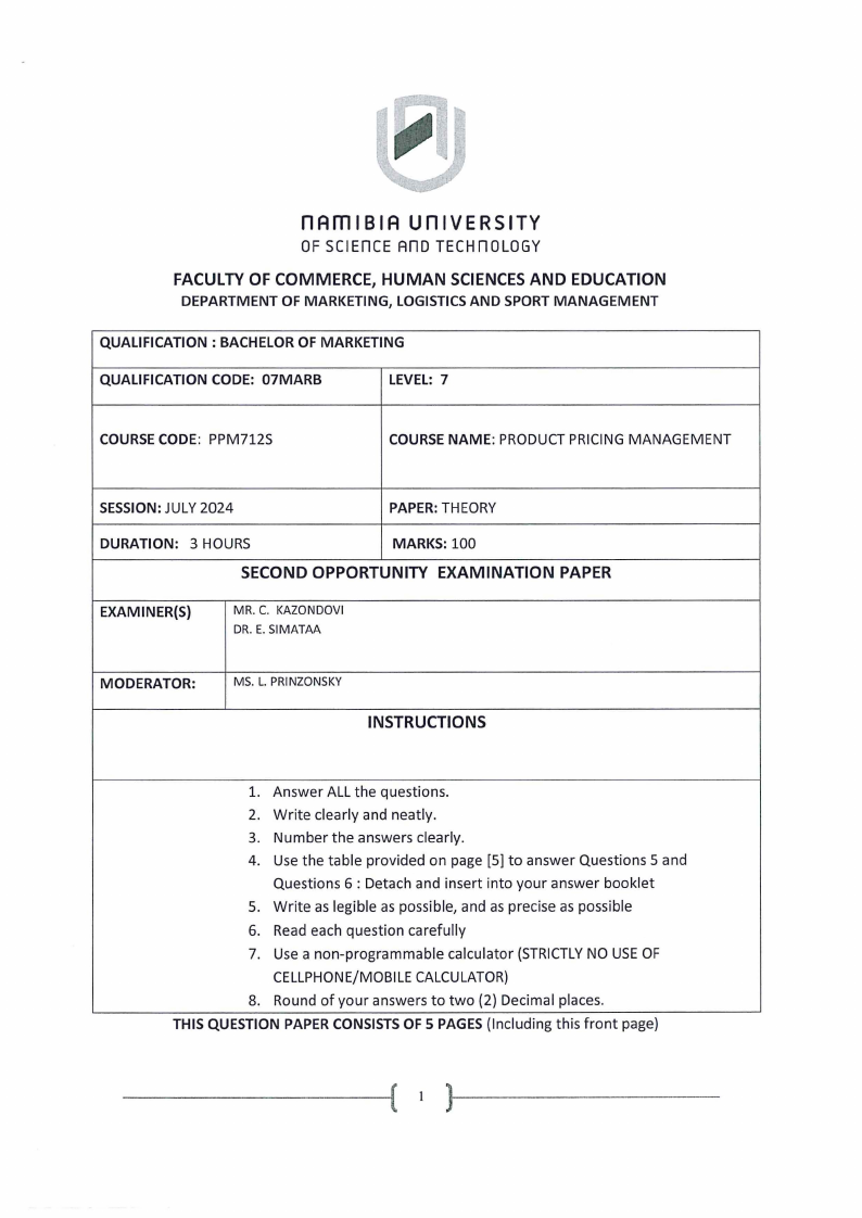 PPM712S- PRODUCT PRICING MANAGEMENT- 2ND OPP- JULY 2024 |