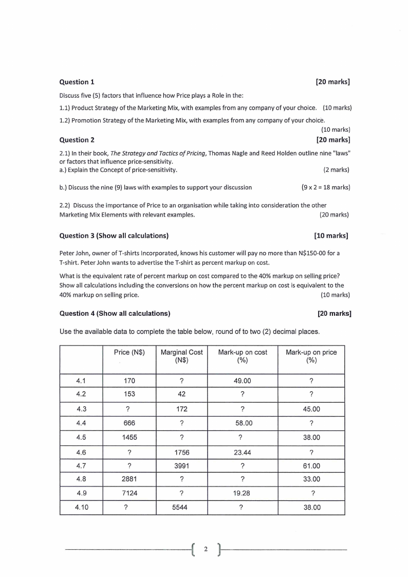 2.1) In their book, The Strategy and Tactics of Pricing, Thomas Nagle and Reed Holden outline nine "laws"