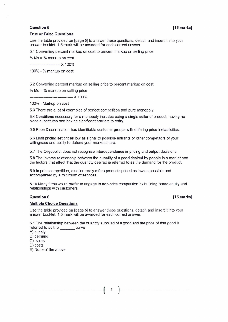 Questions 6 : Detach and insert into your answer booklet