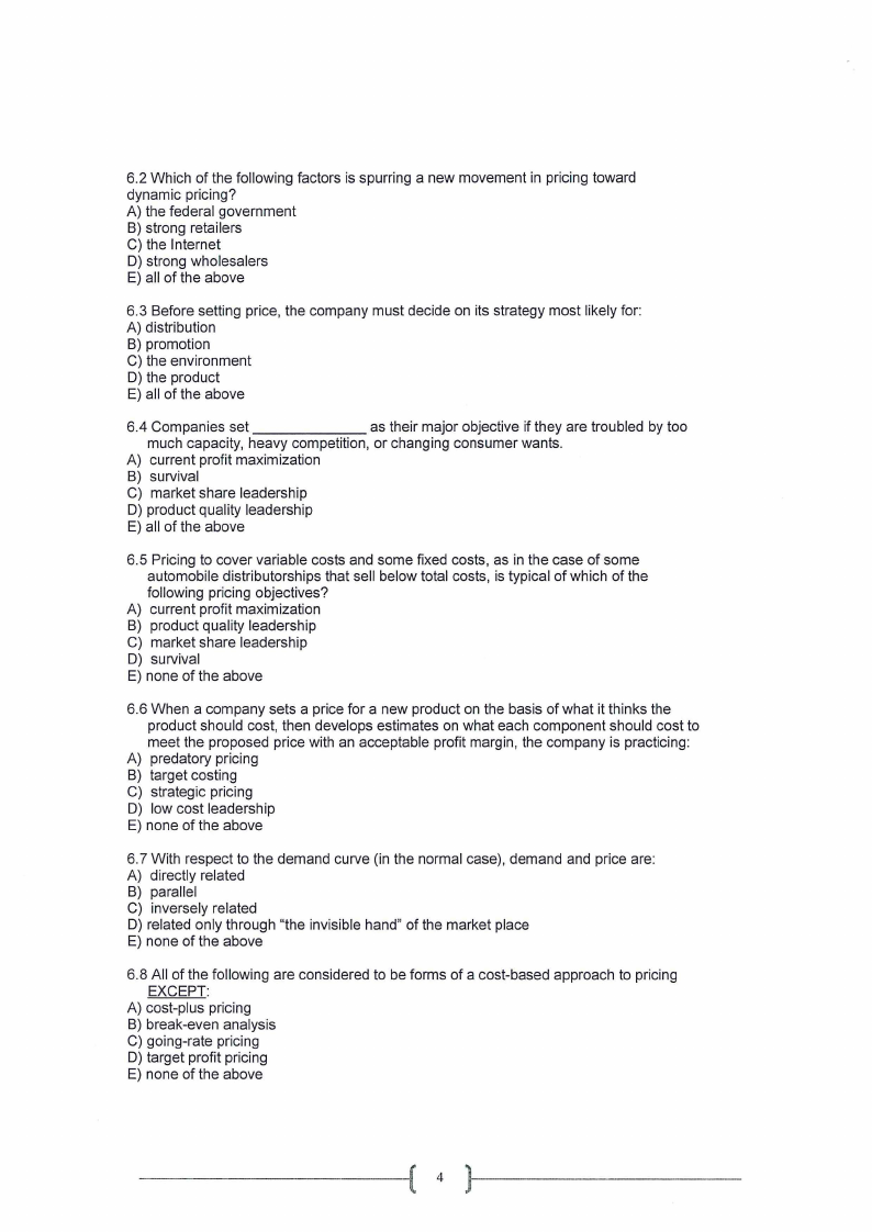6.3 Before setting price, the company must decide on its strategy most likely for: