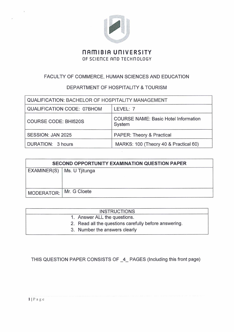 BHI520S - BASIC HOTEL INFORMATION SYSTEM - 2ND OPP - JAN 2025 |