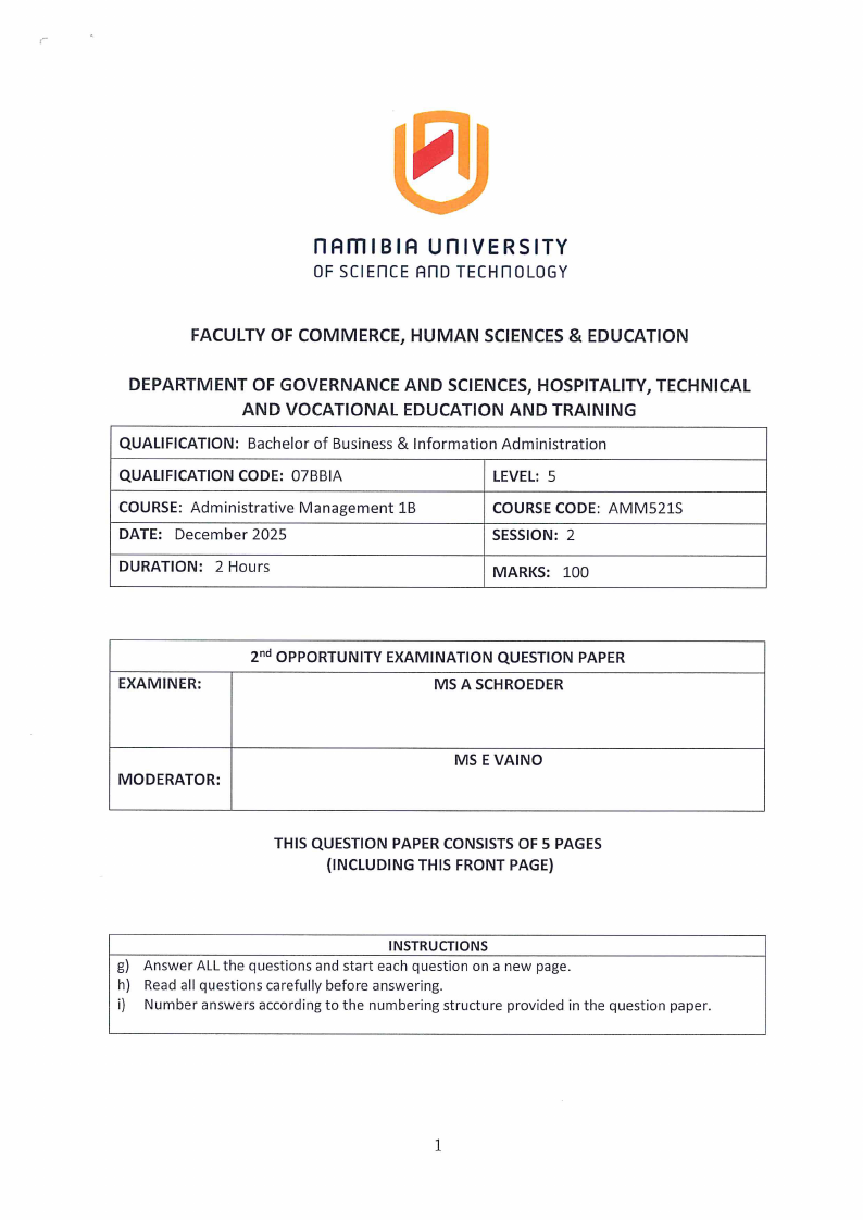 AMM521S - ADMINISTRATIVE MANAGEMENT 1B - 2ND OPP - DECEMBER 2025 |