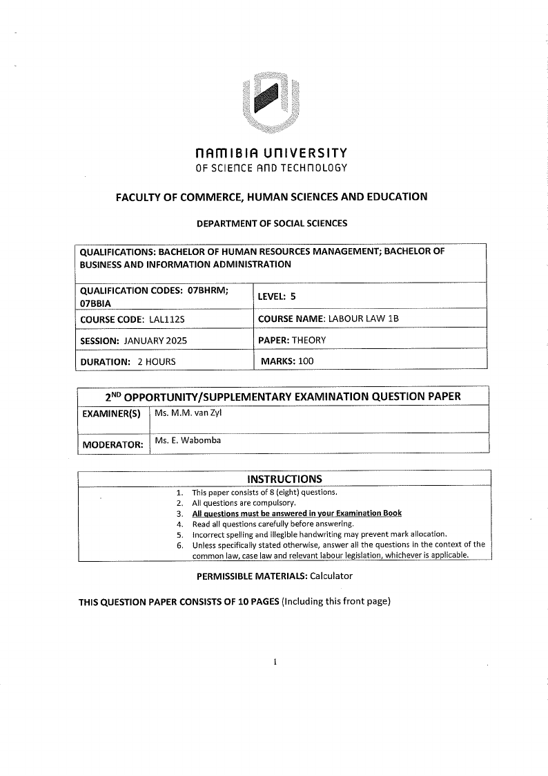 LAL112S - LABOUR LAW 1B - 2ND OPP - JANUARY 2025 |