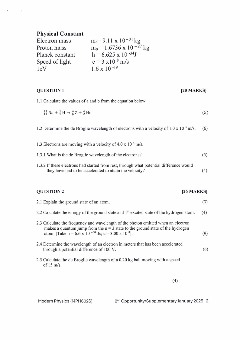 4.2 Using Balmer series determine the wavelength of light emitted when a hydrogen