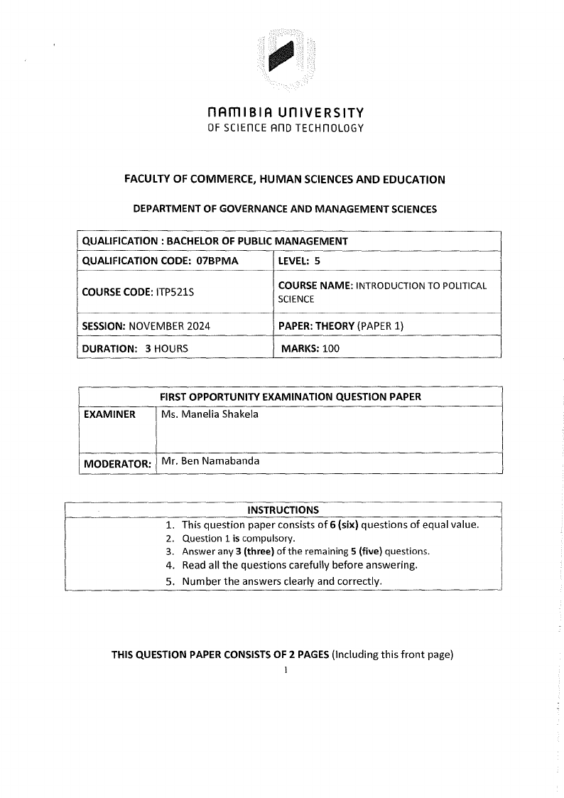 Assembly elections to be held on the 27th November 2024 in Namibia. Given the above,