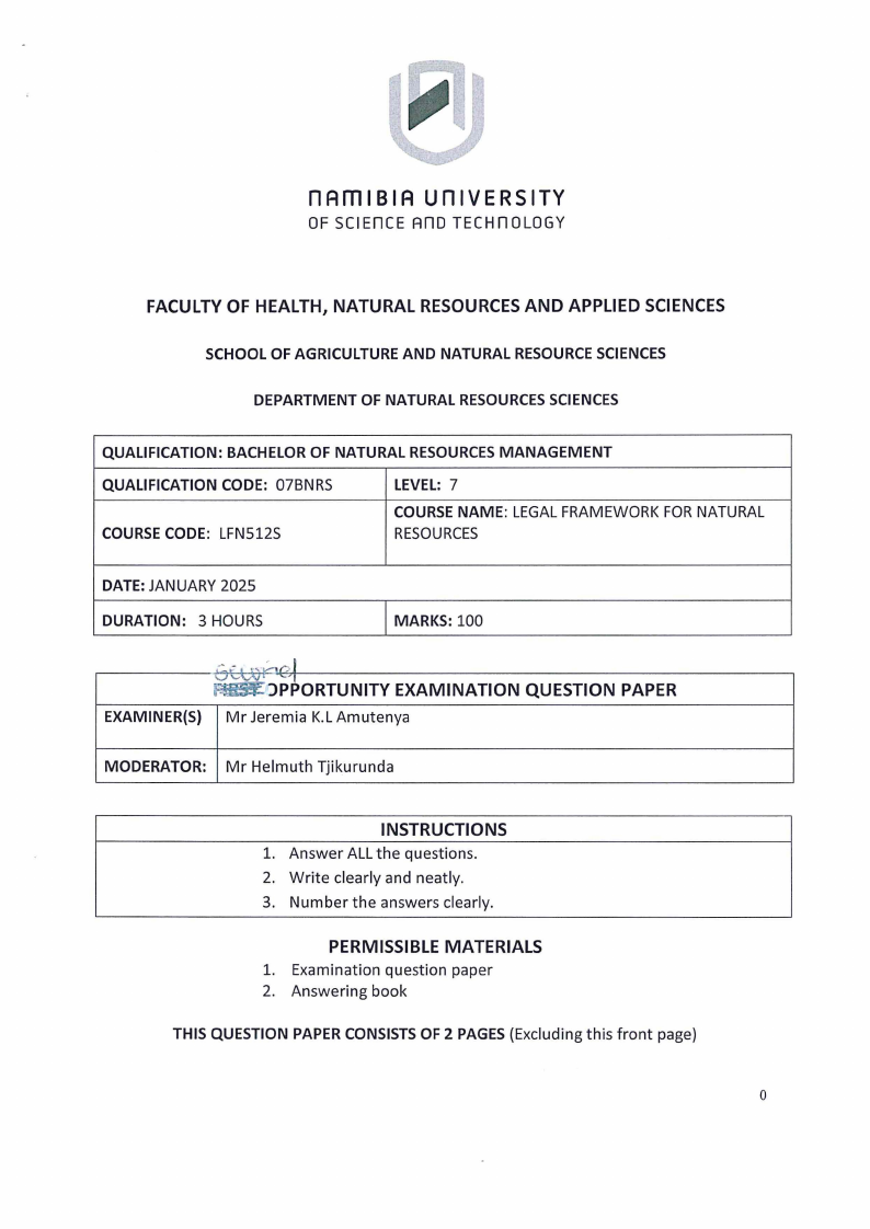 Legal Framework for Natural Resources (LFN520S)
