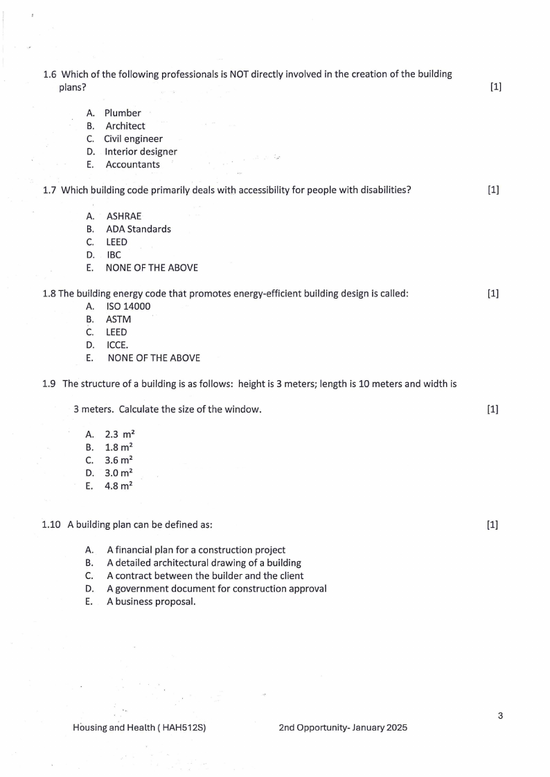 3.3 The colouring of blue materials on the building plan indicates a water pipe.