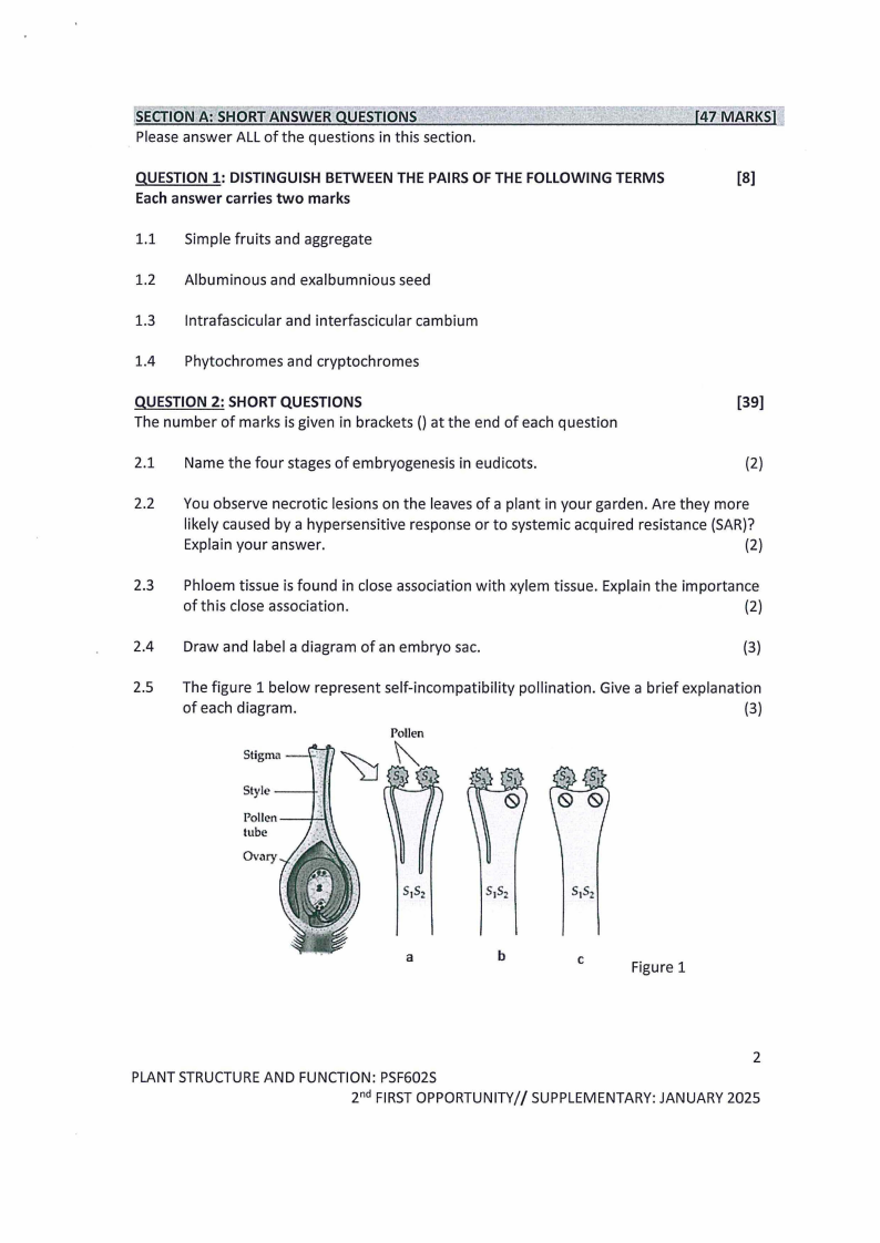 2.5 The figure 1 below represent self-incompatibility pollination. Give a brief explanation