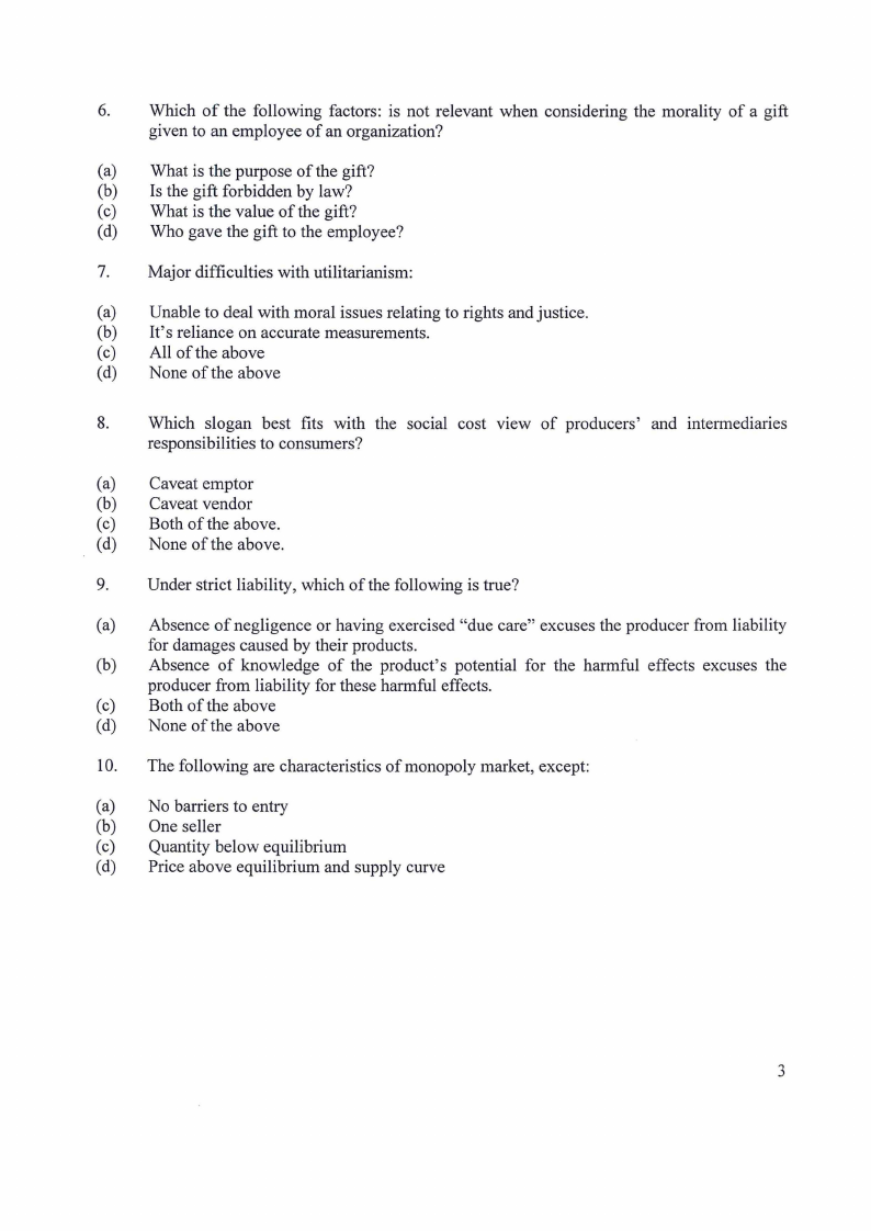 6. Which of the following factors: is not relevant when considering the morality of a gift
