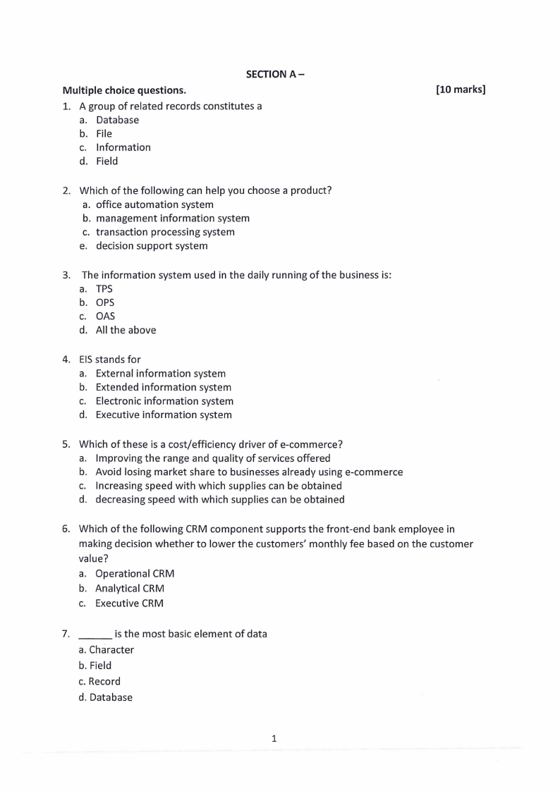 Multiple choice questions.