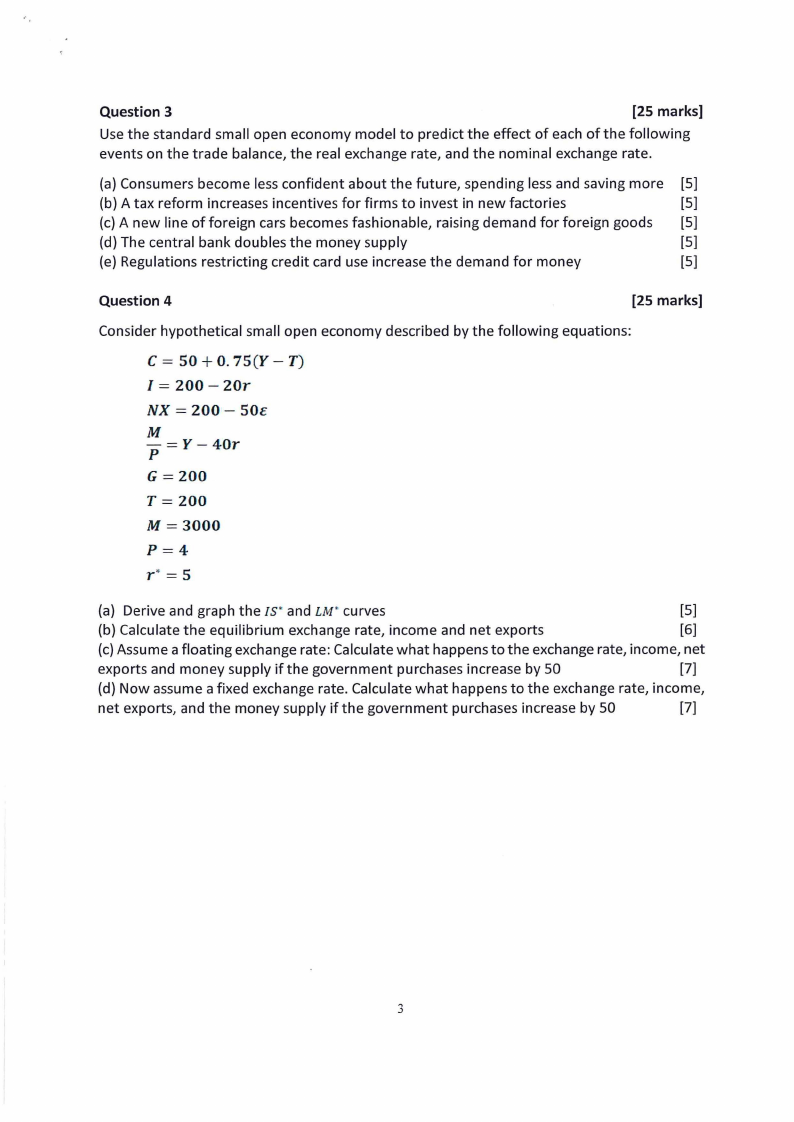 (b) Calculate the equilibrium exchange rate, income and net exports