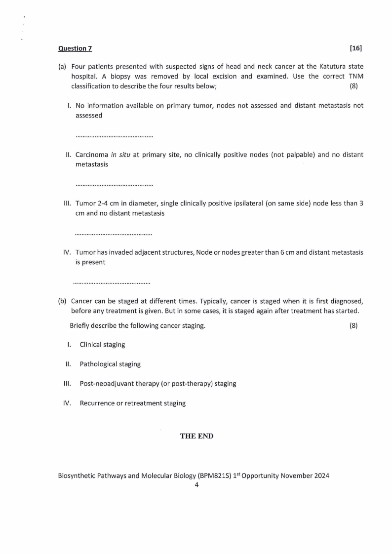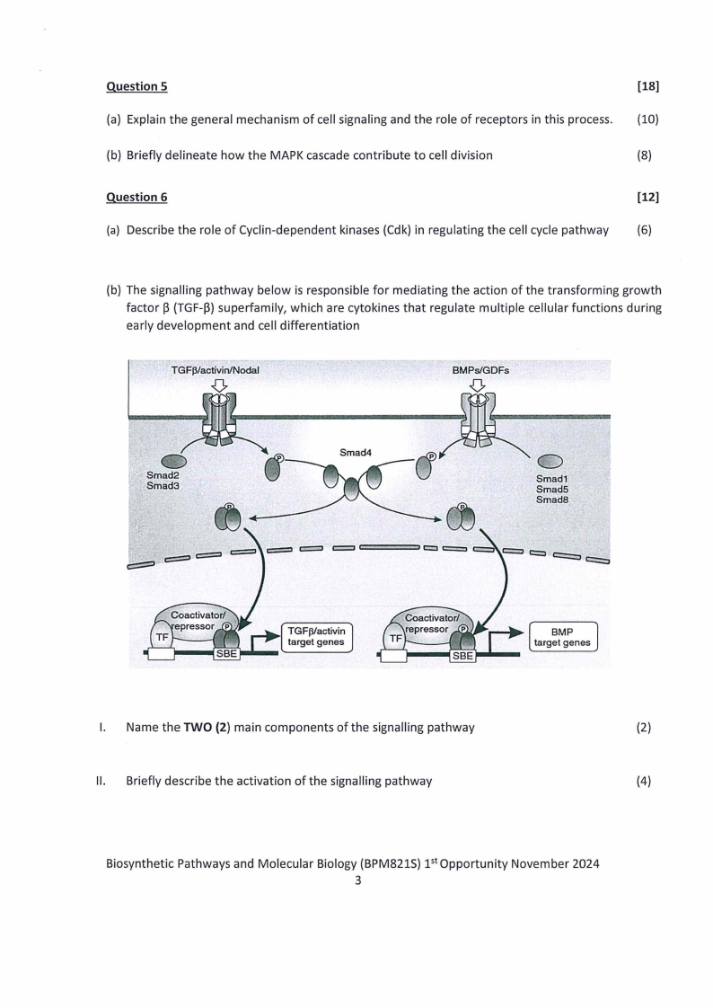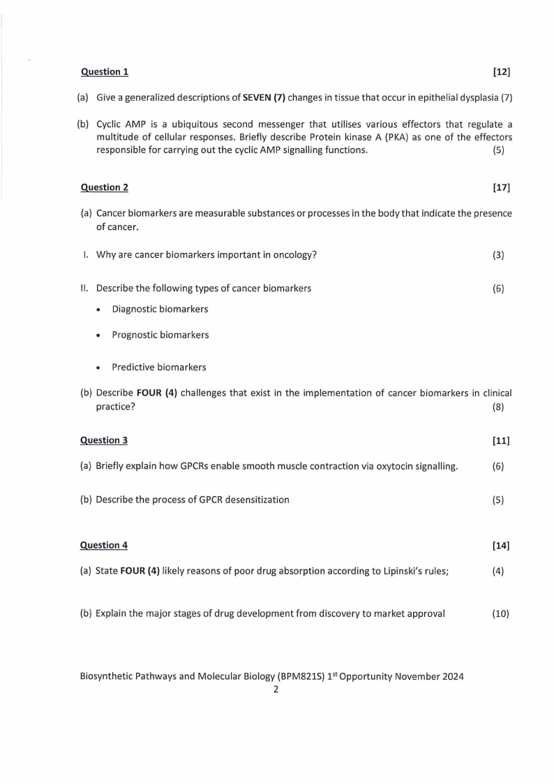 Biosynthetic Pathways and Molecular Biology (BPM821S) ist Opportunity November 2024